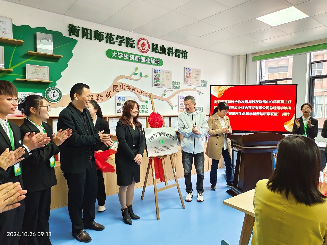 2024 年 10 月 26 日上午,依托买球官方网站生物药物校企联合研发实验室建设的“买球官方网站昆虫科普馆”开馆仪式暨“衡阳市生命科学科普与研学联盟”成立大会在衡阳师范西校区综合实验楼买球官方网站昆虫科普馆隆重举行。