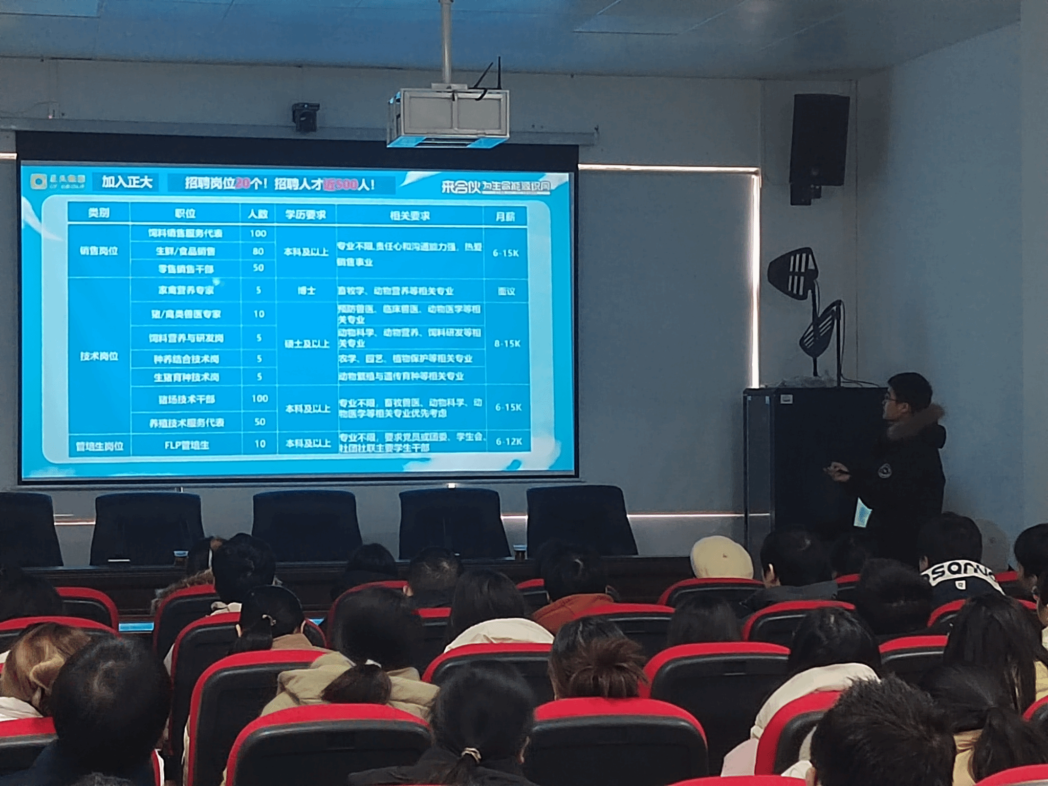 招聘会正式开始前,正大饲料(衡阳)有限公司负责人喻经理为毕业生进行了一个小型宣讲会。会上,他不仅为毕业生详细介绍了正大集团的企业文化和发展需求,还为毕业生介绍了此次招聘会提供的岗位要求等,让同学们对此次招聘会有了更深入的了解。本次招聘会吸引了18家用人单位前来设摊招聘,提供了各科教师、销售、环保咨询工程师、技术研发等250多个就业岗位,为毕业生提供了丰富的就业选择。