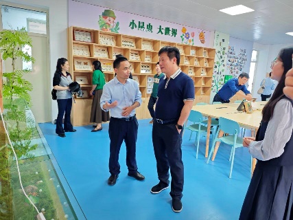 在易诚院长的陪同下,吕卓书记一行参观了湖南省重点实验室共享平台。易院长详细介绍了平台内的高端仪器设备及其在基因测序、生态保护等领域取得的标志性成果,并强调“共享平台不仅是科研创新的引擎,更是学生实践能力培养的实战基地”。随后,吕卓书记一行走进昆虫科普馆,通过沉浸式互动体验感受生物多样性魅力。在生物医药-创新实验室,重点实验室常务副主任唐青海教授阐释了“4321产教科文”的特色育人模式,即以科研课题为纽带,引导学生从理论学习向创新实践跨越。吕卓书记高度评价:“高校实验室与中学教育的深度联动,为青少年科学素养培育开辟了新路径。”