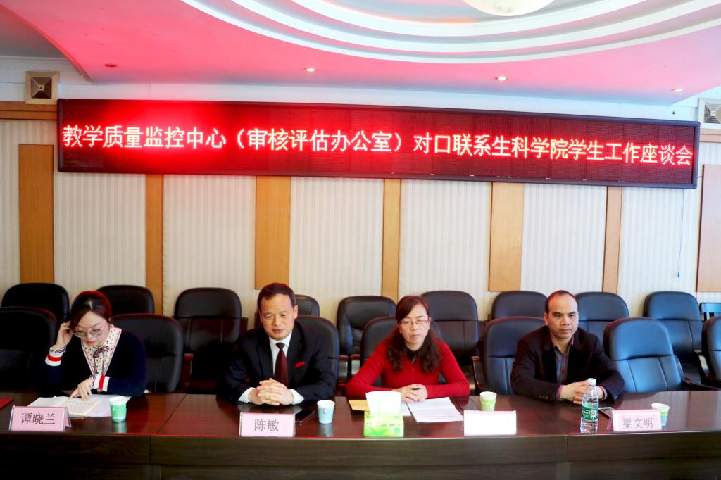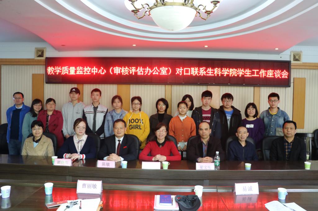 4月30日上午11时,教学质量监控中心(审核评估办公室)对口联系买球官网学生工作座谈会在西校区行政办公楼308顺利开展。副校长陈敏,审核评估办公室主任彭巧燕、副主任谭晓兰、教学质量评估中心副主任梁文明四位校领导莅临本会。买球官网党总支书记刘艳波,院长曹丽敏,副院长易诚与相关老师出席会议,对口联系班级的部分学生代表参加会议。