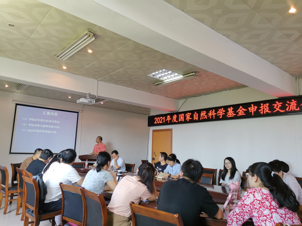 杨海副院长作了《生命科学与环境学院国家自然科学基金项目申报》的专题报告,他从学院国家自然科学基金项目概况、优势与不足、学院工作策略、教师突破方法以及2022年国家自然科学基金项目推进计划等方面进行了详细汇报,并现场征求意见,各位老师踊跃发言。