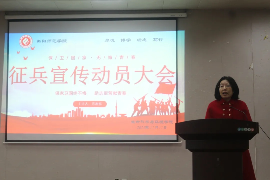 为鼓励学生积极参与应征入伍,提高兵员征集质量,推进国防和军队现代化建设,12月17日上午8点30分,买球官网于千禧楼6楼活动中心举办“立志参军,精忠报国”的征兵宣传动员大会。买球官网党总支副书记蒋湘祁任主讲人,21级全体同学参加了这次会议。