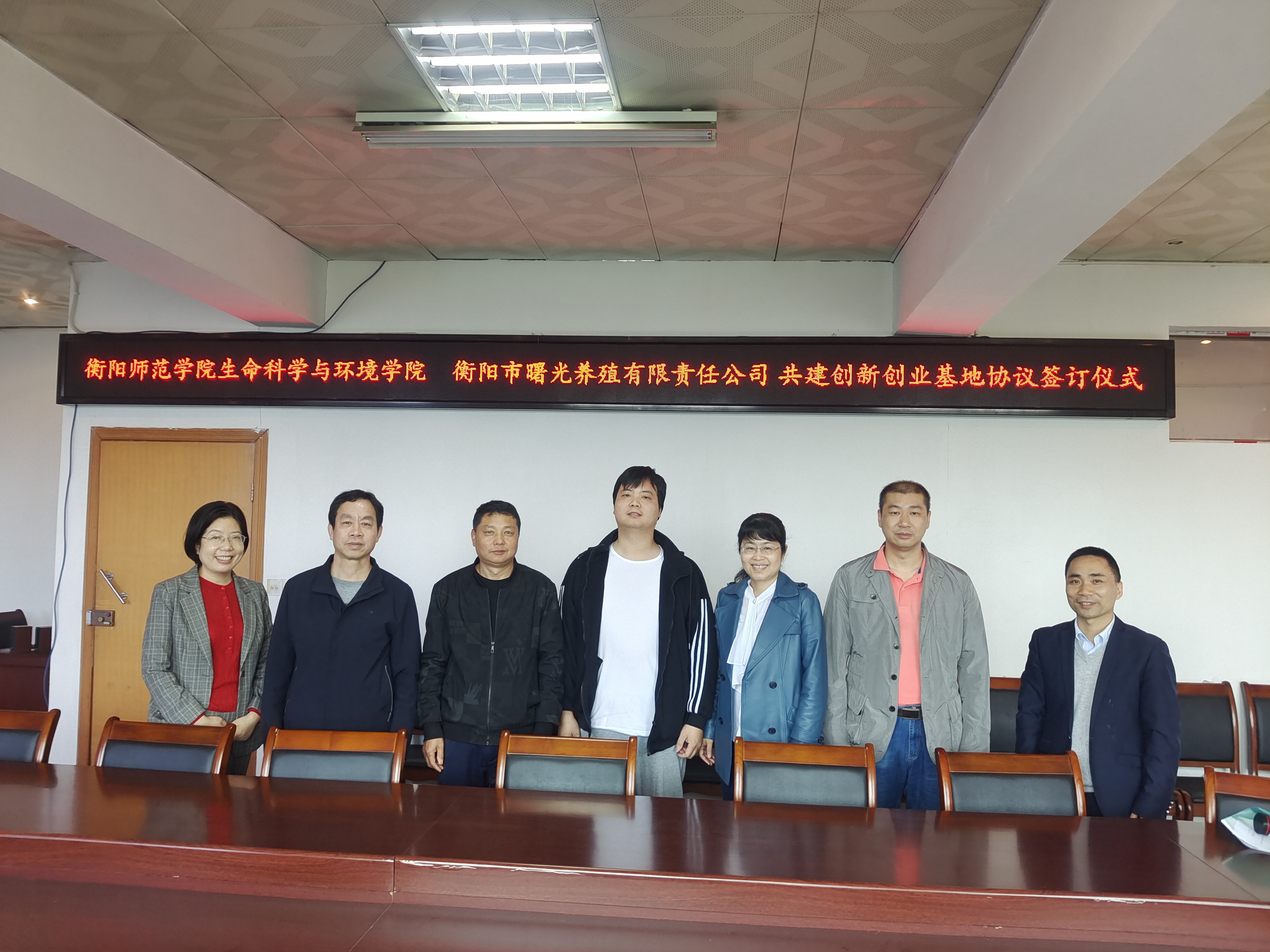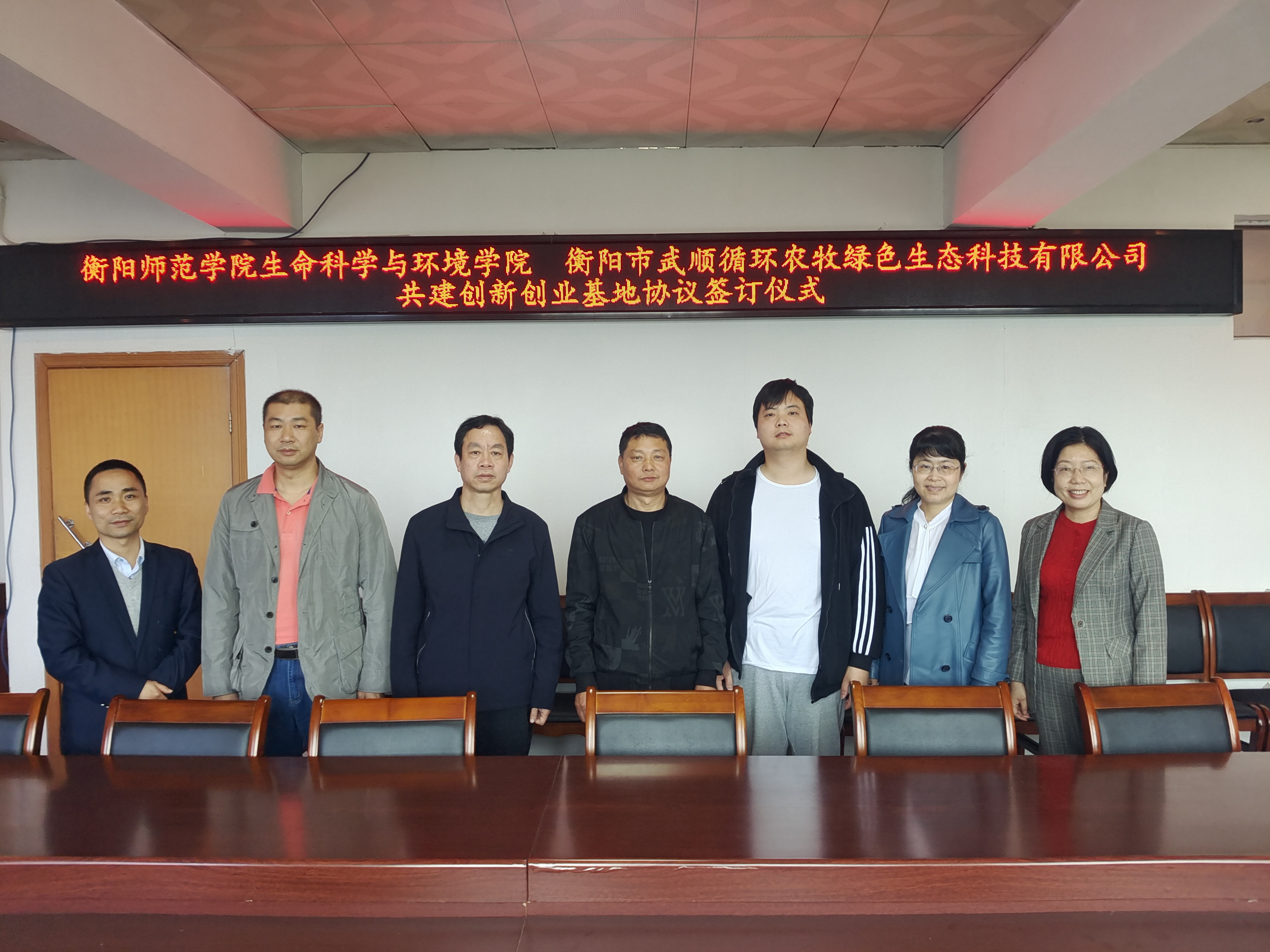 2022年5月15日上午,生命科学与环境学院院长曹丽敏教授代表学院与衡阳市武顺循环农牧绿色生态科技有限公司总经理任先武先生、衡阳市曙光养殖有限责任公司总经理吴滨先生签署共建创新创业基地协议书。党总支书记彭晖主持了签约仪式,副书记蒋湘祁、副院长杨海和部分专业老师出席了签约仪式。