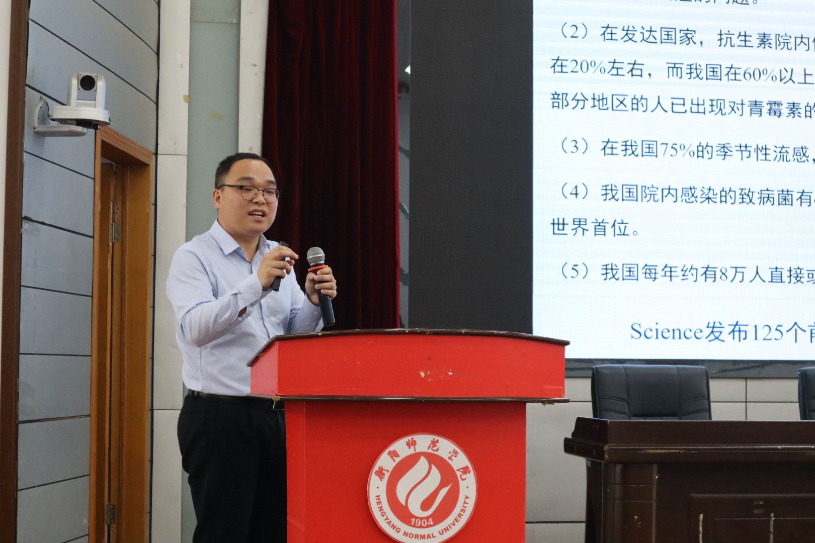 5月9日上午10点,湖南省中医药大学宁毅副教授在西校区模拟法庭为买球官网师生做了一场题为《细菌耐药性的中医药防治研究》的精彩报告。买球官方网站学院党总支书记曹丽敏教授、院长易诚教授、副院长杨海、陈晓华及买球官网师生共同聆听了本次报告。