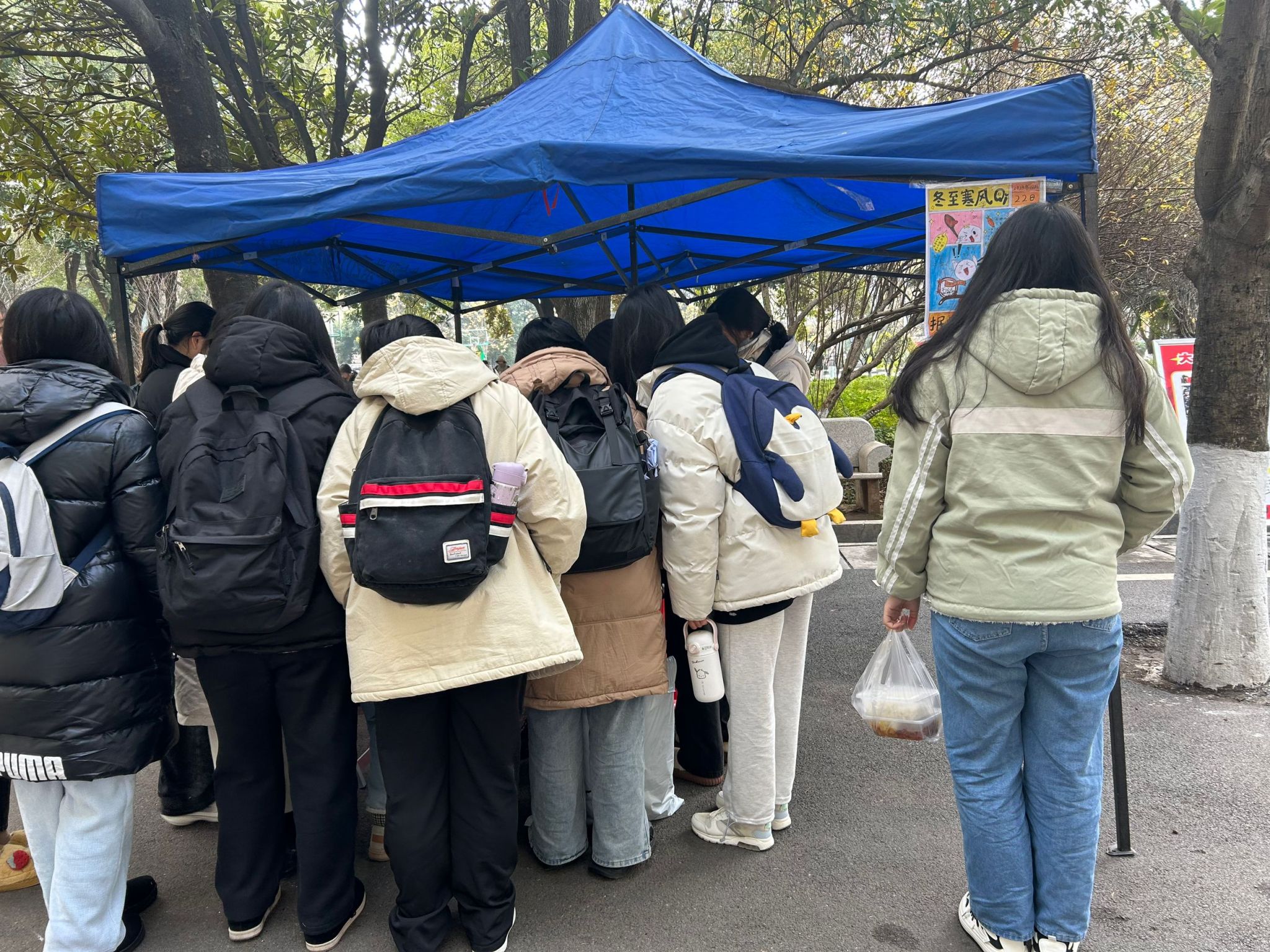 活动伊始,食品俱乐部在西校区千禧楼前,通过张贴节气海报,安排娱乐互动小游戏,奖品兑换活动等,对冬至文化进行宣传,渲染冬至氛围。同学们踊跃报名参加,积极主动回答问题,活动现场笑语不断,洋溢着喜悦的气息。