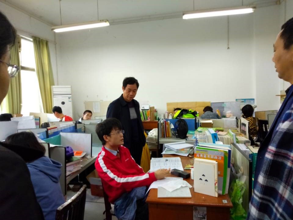10月18日上午十点,生命科学与环境学院党总支书记彭晖、院长曹丽敏、副院长易诚、副院长杨海等一行人来到学院考研自习室,亲切慰问2020年研究生入学考试的学子。