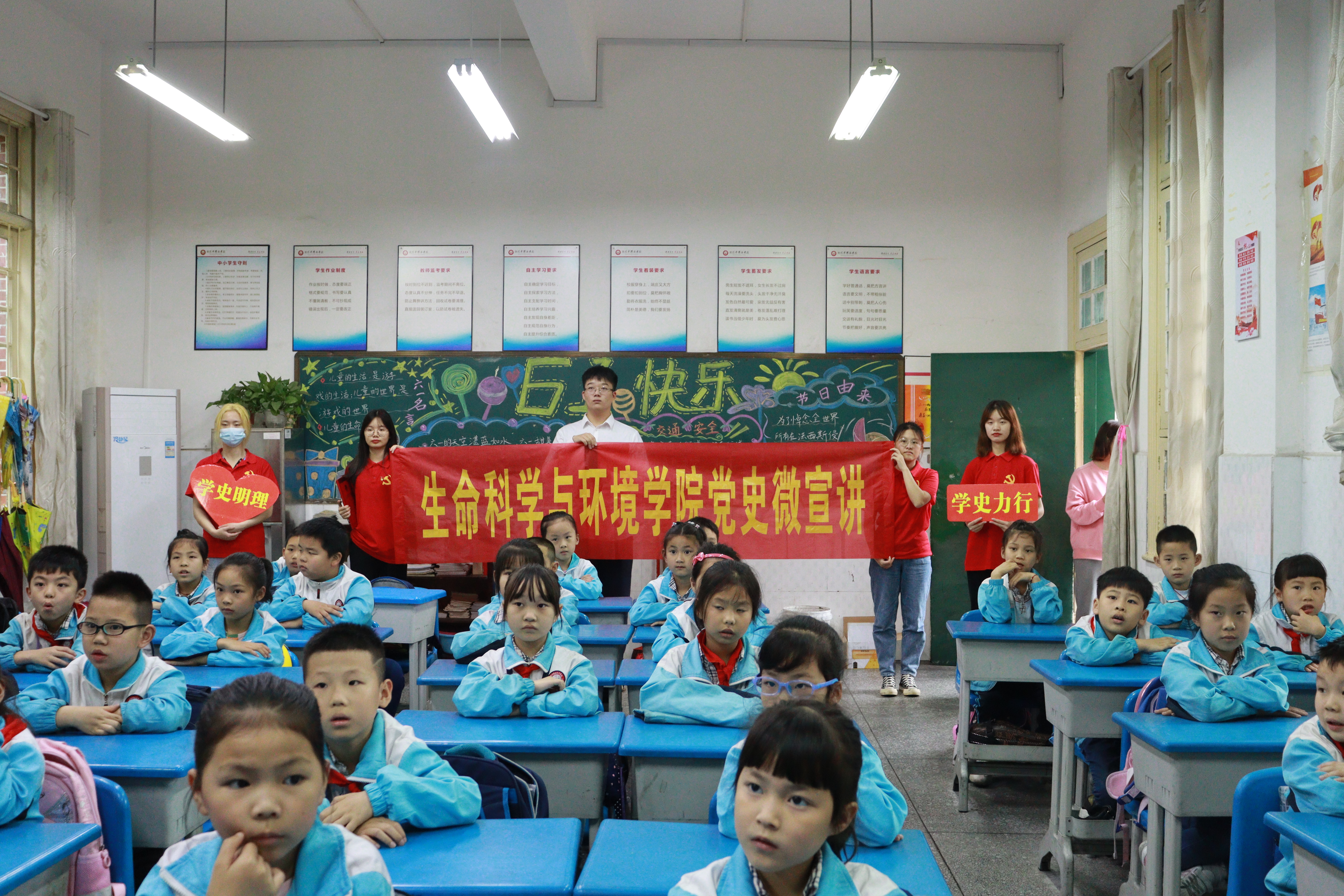 生命科学与环境学院从本院党员中优中选优,严格选拔出了7名素质过硬、思想正派、表达能力强的学生党员组建成“红色校史宣讲团”。5月17-24日,“校史宣讲团”走进学生宿舍、博雅学校教室开办“流动宣讲”微演说。创新运用“红色校史,我讲你听”的模式,打造党史学习红色微课堂,以陈为人、蒋先云等红色校友的事迹为基础线索,用不同时期的代表性事例对中国共产党的百年奋斗征程进行了回顾式宣讲,再现了党开天辟地的伟大壮举,将党的革命精神、红色信念传递给党员、学生、社区群众,回忆艰苦发展历史、回首当今美好生活,引导广大党员和群众领会党不畏艰难的不屈奋斗精神,明确坚定不移跟党走的理想信念。为期一周的党史微宣讲活动下宿舍、进社区、入校园共42场次,辐射带动广大学生、青年才俊、社会人士,引发党史学习热潮。