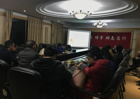 2017年12月29日晚7点,生命科学与环境学院第十届教师学术沙龙交流会议于买球官网西校区行政楼三楼会议室隆重召开。曹丽敏院长、易诚副院长、陈晓华博士、罗远来博士、王晶博士、杨灿博士、周东升博士等12位老师出席参加。本次学术沙龙由王晶博士主讲,王博士报告的主题为“Fe modified Cu-CeO2 catalyst for CO preferential oxidation in H2-rich gay with a higher tolerance to H2O and CO2”。