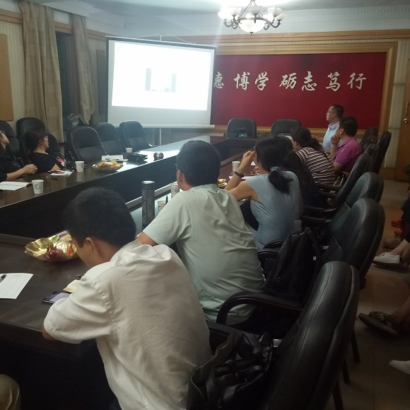 2017年9月28号晚19点,生命科学与环境学院第七届教师学术沙龙交流会于买球官网西校区行政楼三楼会议室隆重召开。曹丽敏院长、易诚副院长、宾冬梅教授等14位老师出席。本次学术沙龙由江伟民博士主讲,江博士报告的主题为“植物特异性的转录因子调控青蒿素中青蒿素代谢途径的研究”。江博士首先简要介绍了研究的背景及意义,指出青蒿中青蒿素的含量太低,难以满足市场需求。接着,江博士介绍了提高青蒿素的产量的方法。通过比较发现微生物代谢工程方法可以合成青蒿素前体物质,但其生产的青蒿素成本相对较高,而利用植物代谢工程方法生产青蒿素则更加经济适用。最后,江博士详细阐述了利用植物代谢工程方法来提高青蒿素的含量的几种做法。