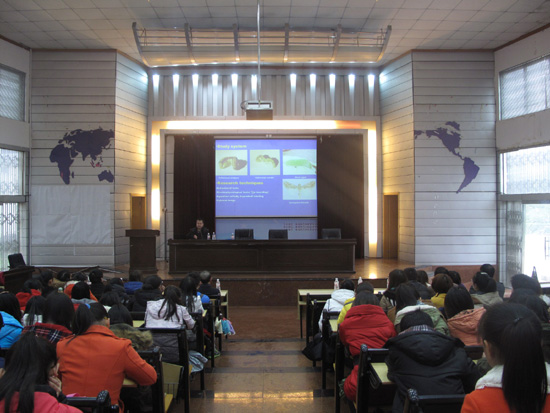 周博士在报告中介绍了其在鳞翅目昆虫的化学感受外围及中枢神经系统结构以及鳞翅目昆虫化学感受的生理等方面所取得研究成果。随后,周东升博士还结合他的留学经历向在场师生介绍了瑞典,荷兰等国的大学校园以及大学生学习生活状况和欧洲生态环境保护的现状以及给我们的启示。