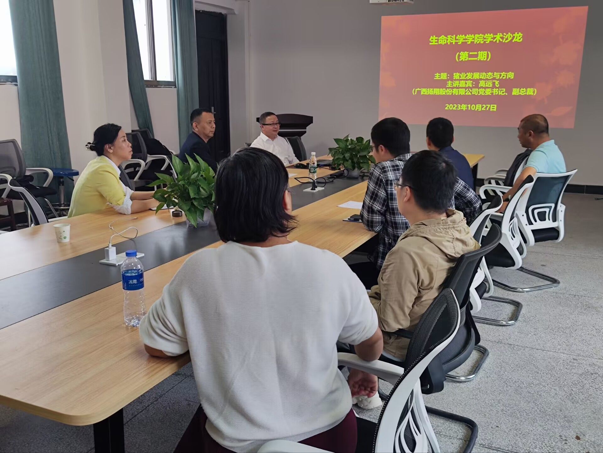 会议特邀广西扬翔股份有限公司党委书记、副总裁高远飞作主题报告,院长易诚教授、副院长杨海教授及陈晓华副教授、畜禽养殖生物工程技术研究所所长唐青海副教授、重点实验室主任杨灿副教授参加本次会议。