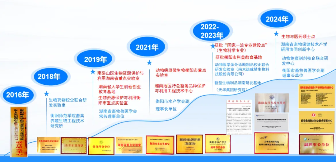 4.整合社会资源,提供高质量发展新动能学院以服务生物-食品-环境行业人才成长和产业发展为导向,以提高服务地方能力为目标,加强校企合,促进人才交流,推进学院服务地方的平台建设。为服务衡阳养殖大市的产业发展,学院拥有买球官方网站畜禽养殖生物工程技术研究所、现代农牧产业学院等校级平台4个,加强校企合作项目开发,建设有海大集团湖南益豚生态农业有限公司联合研究中心,生物药物校企联合研发实验室(广州格雷特)等校企合作实验室5个,2024年6月,湖南省宠物保健技术产学研用协同创新中心(湖南省宠物诊疗行业协会)在学院成立,同时建设有南岳山区生物资源保护与利用湖南省重点实验室、湖南科普教育基地,湖南省创新创业教育基地(南岳生物制药有限公司)等省市级平台5 个,为学院开展“产教研用”融合育人模式提供了平台基础。近5年,学院教师依托校企合作平台积极服务地方经济社会发展,近5年教师获得横向项目29项,授权专利26项,成果转化10项,研发新产品6个,制定行业标准6项,制定企业标准2项,办技术推广会议100多场次,培训产业技术人员2500余人次,帮助地方政府实现800余人就业,助力“衡阳湘黄鸡”入选国家农产品地理标志、发现地方遗传资源新品种“柞市麻羊”,指导衡阳香樟苑生态农业科技发展有限公司等30余家企业成长为省级高新技术企业、农业产业化龙头企业和科技小巨人企业。