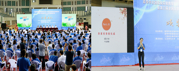 8月7日至9日,第三届全国大学生生命科学创新创业大赛总决赛在江苏师范大学举行。经过紧张激烈的角逐,大赛于8月9日胜利闭幕,江苏师范大学校长周汝光,教育部高等学校国家级实验教学示范中心联席会生物和食品学科组组长、吉林大学滕利荣,教育部高等学校生物科学类专业教学指导委员会秘书长、清华大学张贵友等领导和专家出席闭幕式,来自全国200多所高校的1000多名参赛选手和指导教师参加闭幕式。买球官网生命科学与环境学院学生科创小组(学生组员:2015级动物科学专业的黎露、韩涛涛、吴思雯、廖慧同学,指导老师:唐青海博士)在总决赛中荣获一等奖。本次获奖,实现了买球官网生命科学学科竞赛国家级奖项的大突破。
