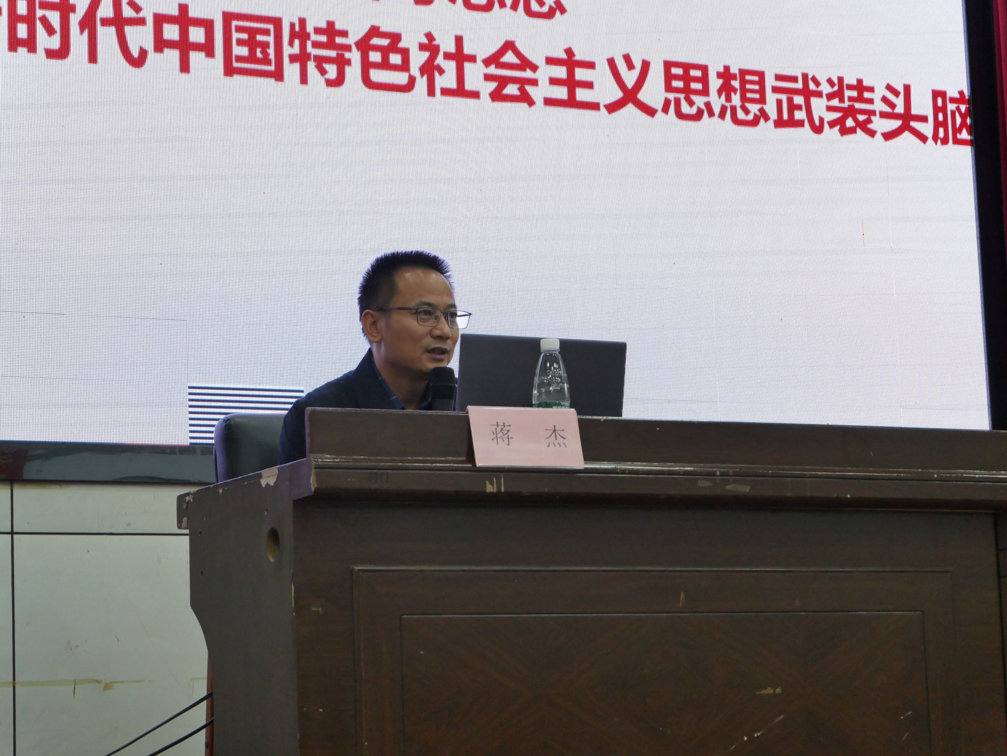 蒋杰老师讲授了《坚持党的理论指导,自觉用习近平新时代中国特色社会主义思想武装头脑》专题党课,从什么是党的指导思想和党的指导思想发展过程两个方面为学员们讲述了党的理论的发展,说明了习近平新时代中国特色社会主义思想的重要性,勉励学员们加强理论学习,争取早日入党。