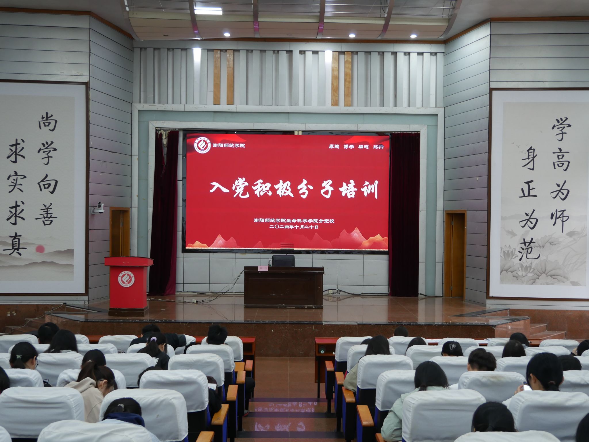 为贯彻落实《中国共产党发展党员工作细则》有关规定,加强对入党积极分子的培养教育,帮助入党积极分子端正入党动机,严把发展党员“入口关”,确保新发展党员的质量,2024年10月20日,买球官方网站联同南岳学院、教育科学学院在模拟法庭组建第70期入党积极分子培训班,进行第一阶段的培养教育。当天,教育科学学院党总支书记谢伟华,宣传统战部常务副部长蒋杰,组织部部长唐艳,买球官方网站党总支副书记陈雅斐相继担任主讲人,全院共57名入党积极分子参加此次培训。