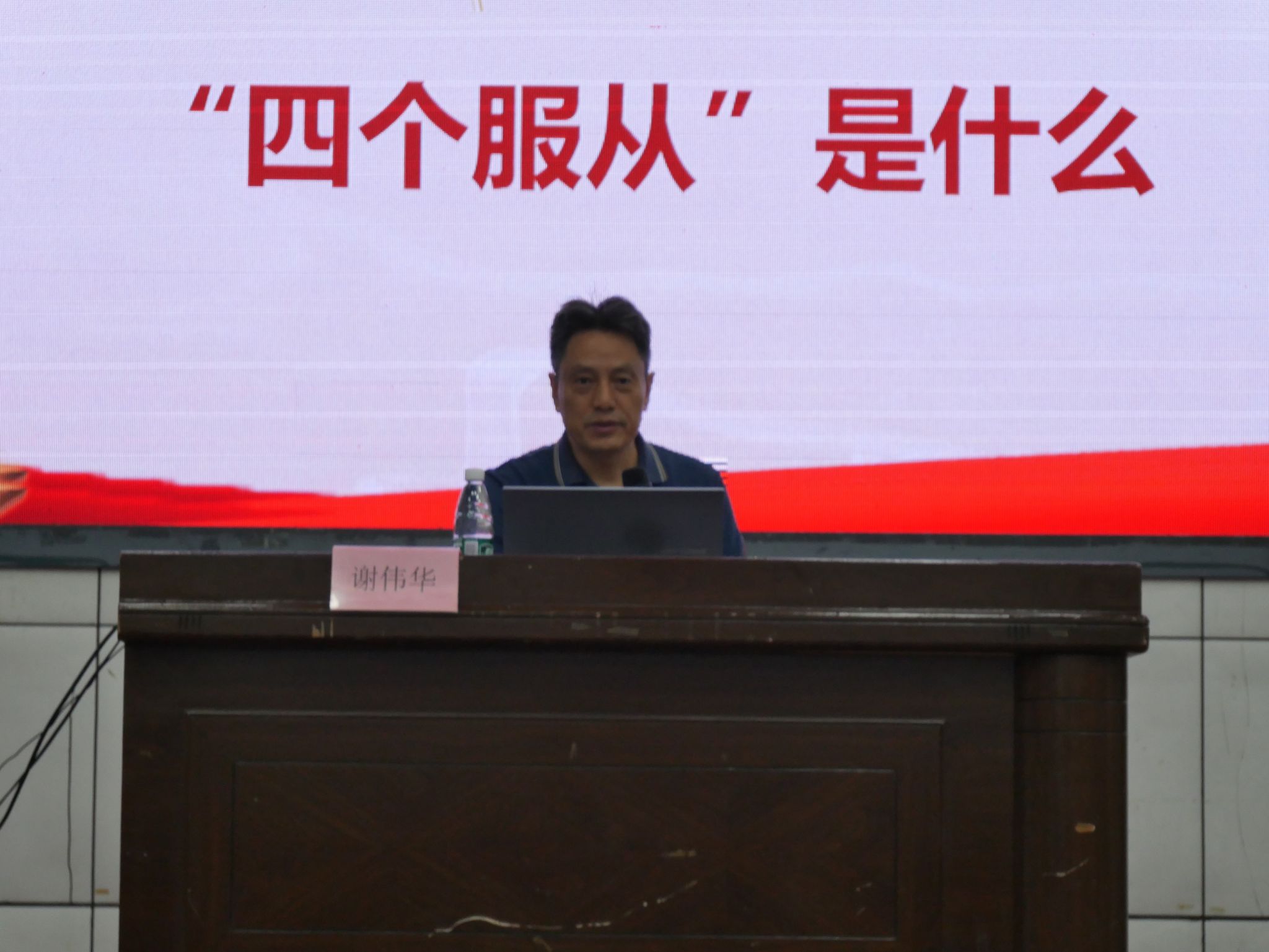 谢伟华老师讲授了《增强组织观念,坚决维护党的团结统一》专题党课,通过回顾党的历史,为入党积极分子讲述了党的团结统一是如何被维护和发展的,同时讲解了“四个服从”的内涵,“四个服从”的形成过程和“四个服从”的基本要求,对学员们进行指导。