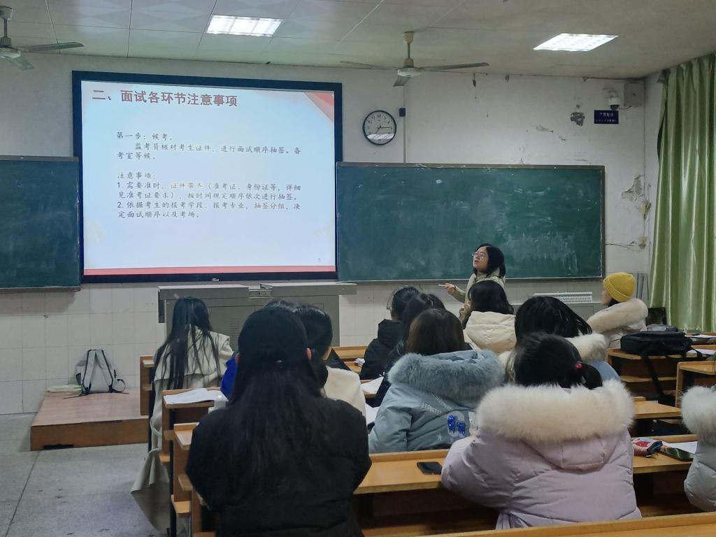 12月22日晚,买球官网在外语楼101召开了教师资格考试面试指导会议,江伟民、王娜、刘宇华等老师,以及2018级通过教师资格笔试的同学参加了本次会议。