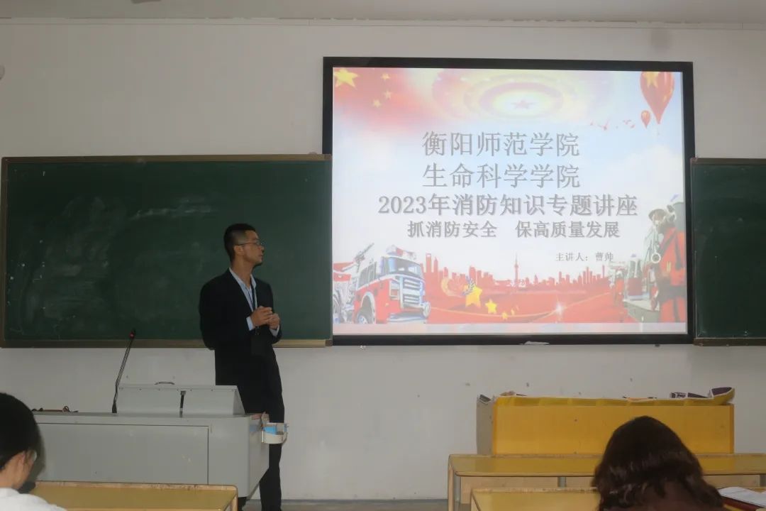为进一步普及消防安全知识,提升师生安全防范意识,培养良好安全行为习惯,5月10日下午三点,买球官方网站于美术楼104室进行消防安全知识讲座和培训,买球官网特邀湖南省会消防中心曹帅警官主讲此次讲座,生科院全体老师和部分学生代表参与本次讲座。