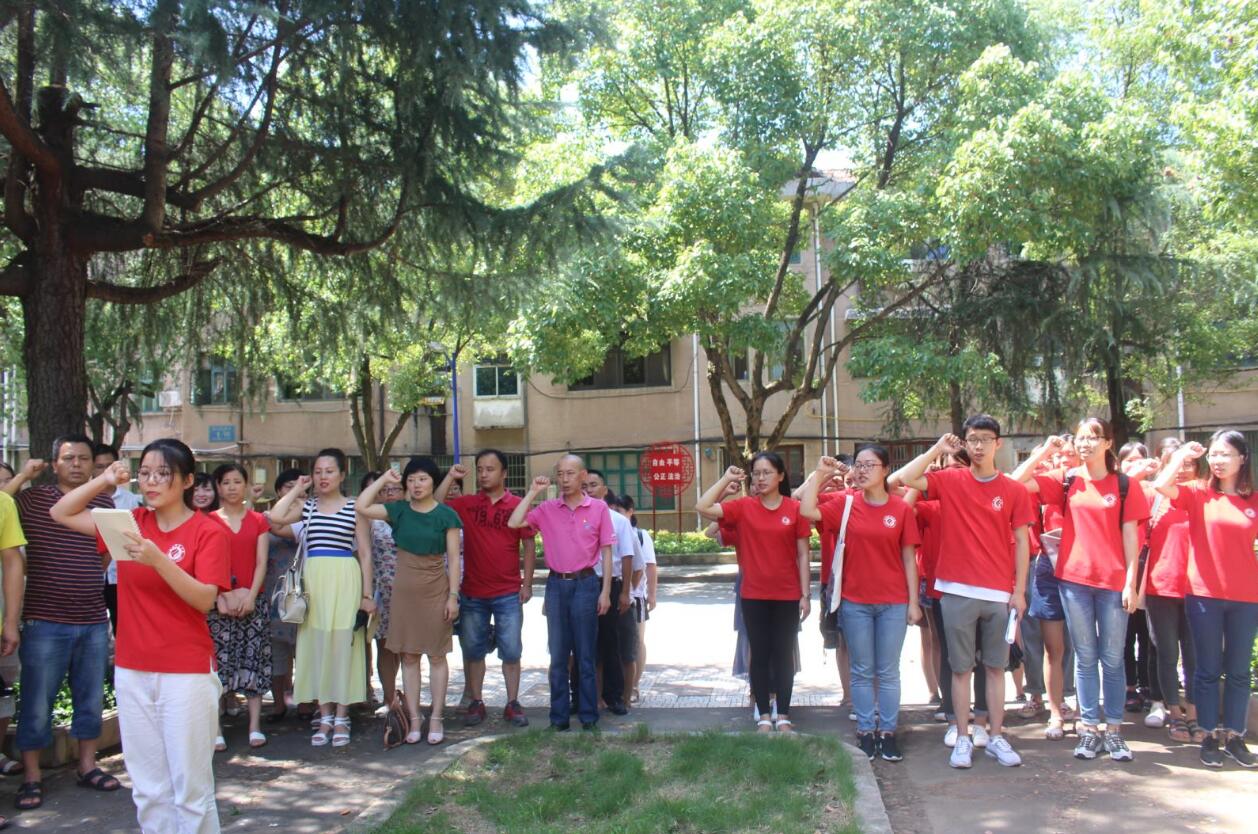 随后,生命科学与环境学院学生党支部书记何海婷代表学生党员发言。她郑重承诺将时刻以一名党员标准严格要求自己,不断展现一个新时代学生党员的先进风采,不断努力为社会主义建设贡献自己的一份力量。2018年新发展党员代表黄淑琴说,预备党员的身份对自己是一种光荣的鼓励和鞭策。作为党的后备力量,自己将以优秀党员同志为榜样,努力为人民服务。最后,老党员代表张达莉带领全体党员在雕像前庄严宣誓,面对党旗,大家握拳齐肩举手,用坚定的声音抒发对党忠诚的决心。