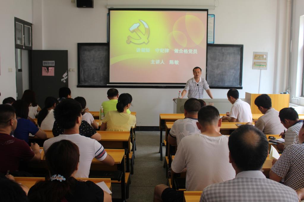 6月29日下午3:00,买球官网副校长陈敏在西综实楼408室做了“两学一做”专题—“讲规矩,守纪律,做合格党员”辅导报告会。生命科学与环境学院、保卫处、后勤处等部门共80余名党员参加了报告会。