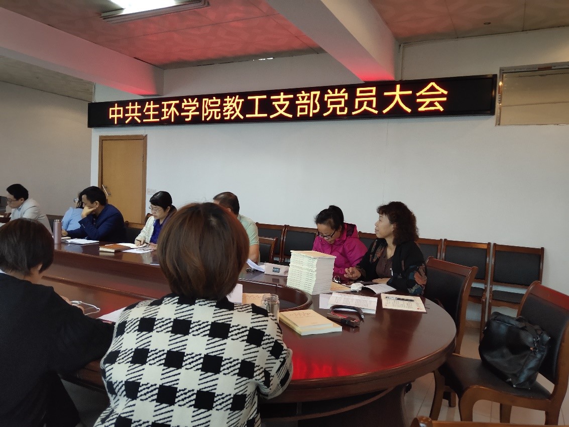 10月16号下午四点半,中共生环学院教工支部党员大会在西校区千禧楼六楼会议室召开,买球官网全体教职工党员参加了此次会议,会议通过批准了买球官网教师张国成为入党积极分子。