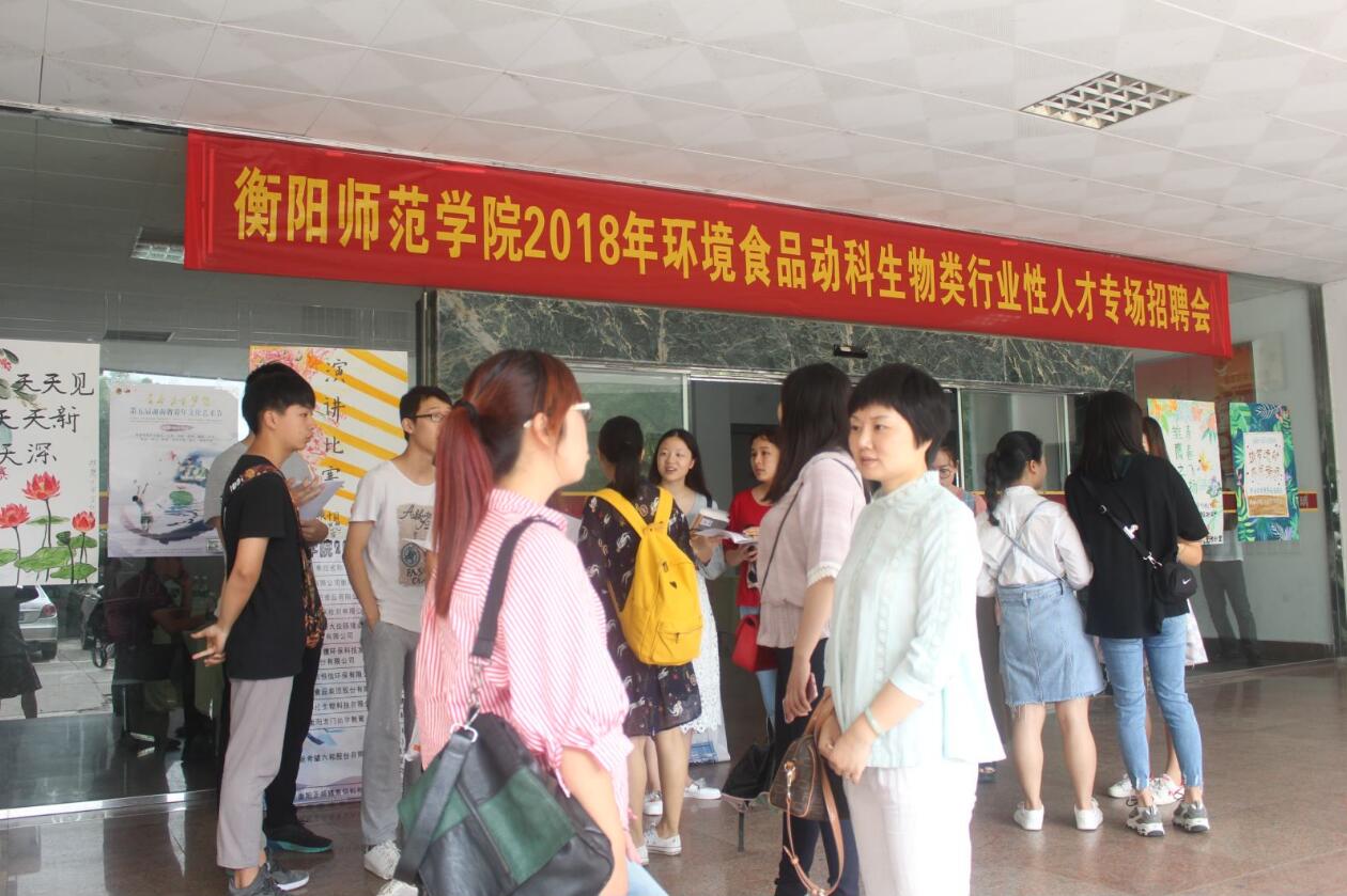 6月14日上午9:00,由买球官方网站招生与就业指导处主办,生命科学与环境学院承办的2018届毕业生环境食品动科生物类行业性招聘会在西校区物电楼成功举行。生命科学与环境学院全体党政领导以及相关专业老师到现场组织协调。来自广东、湖南等11家用人单位提供了300余个工作岗位,吸引生命科学与环境学院毕业生踊跃尝试,积极参与。