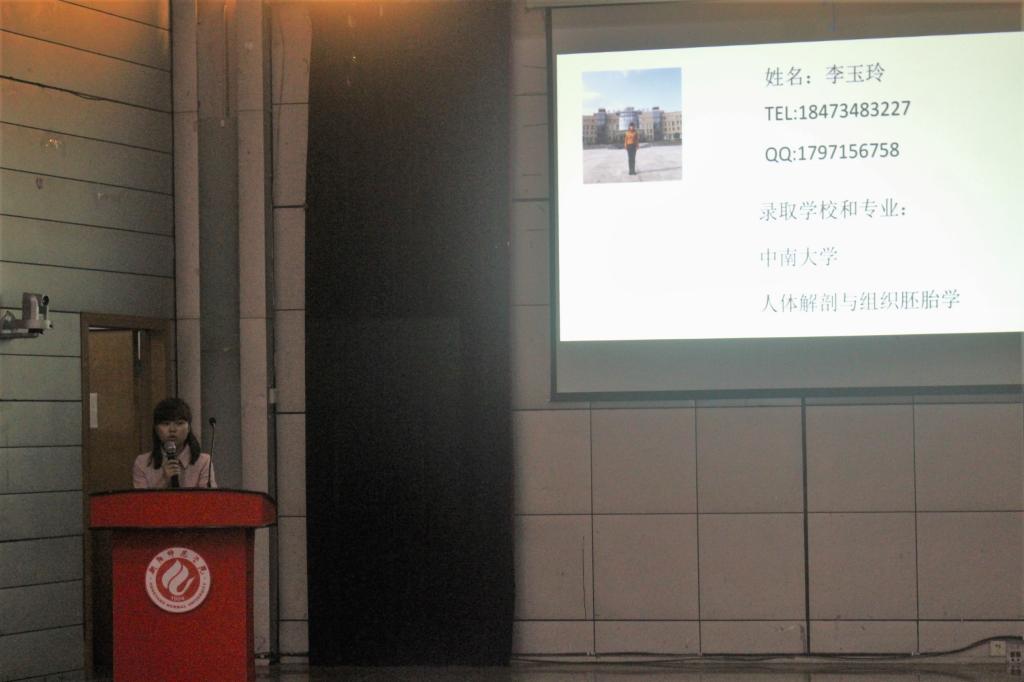 而后,2014级王鹏辉(考取浙江理工大学)、杨颖(考取暨南大学)、李玉玲(考取中南大学)、肖雪诗(考取华南师范大学)、廖文静(考取安徽农业大学)、苏文璇(考取中国科学院)六位优秀学生代表分别就当下考研形势、考研目的、初试各科目的时间安排、面试中的相关技巧等方面和大家进行了分享,期间并畅谈了他们的心路历程,在互动环节中,同学们积极主动地提出自己的疑惑:“如何调整考研期间的作息时间”、“如何了解和选择报考学校以提高考研成功率”、“如何利用暑假这个重要的时间段来提高自己的学习效率”等,针对这些问题,老师与学长、学姐们结合自己的实际经验与同学们进行了耐心细致的交流。准确实用的信息、亲切风趣的话语博得了现场同学们的热烈掌声。会后,大家互留了联系方式,以便更加详细深入的沟通。