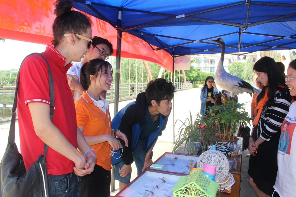 本次活动共展出动植物标本40余件,其中植物标本、动物浸制标本均为买球官网学生实习期间采集、制作。动物标本区威风凛凛的华南虎、毛发蓬松的黄鼠狼、仙风道骨的丹顶鹤;植物盆栽区可爱的多肉植物、生机勃勃的高茎植物;环保艺术节优秀作品展区陈列的旧木板毛线画,快递盒、废弃墙纸制成的简易书架,铅笔屑粘合而成的跳舞姑娘,都是在学生们的巧手中制作而成。形态各异的动物标本、五花八门的植物标本、环保艺术节脱颖而出的精美艺术品、多姿多彩的植物盆栽,吸引了广大师生驻足观赏。参观之余,现场讲解员详细耐心地讲解各个展品的制作过程和实用价值,使师生更加深入地了解了动植物相关的科普知识,同时也激发了他们制作标本的兴趣。