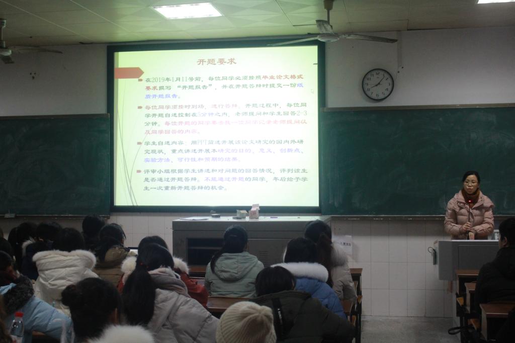 1月11日上午8:00,生命科学与环境学院2019届毕业生学位论文开题报告会准时在西校区外语楼召开。首先于301教室进行了开题仪式,易诚副院长,孙伟峰、刘会敬、陈佩云等相关专业老师,以及2015级全体学生到场参会。