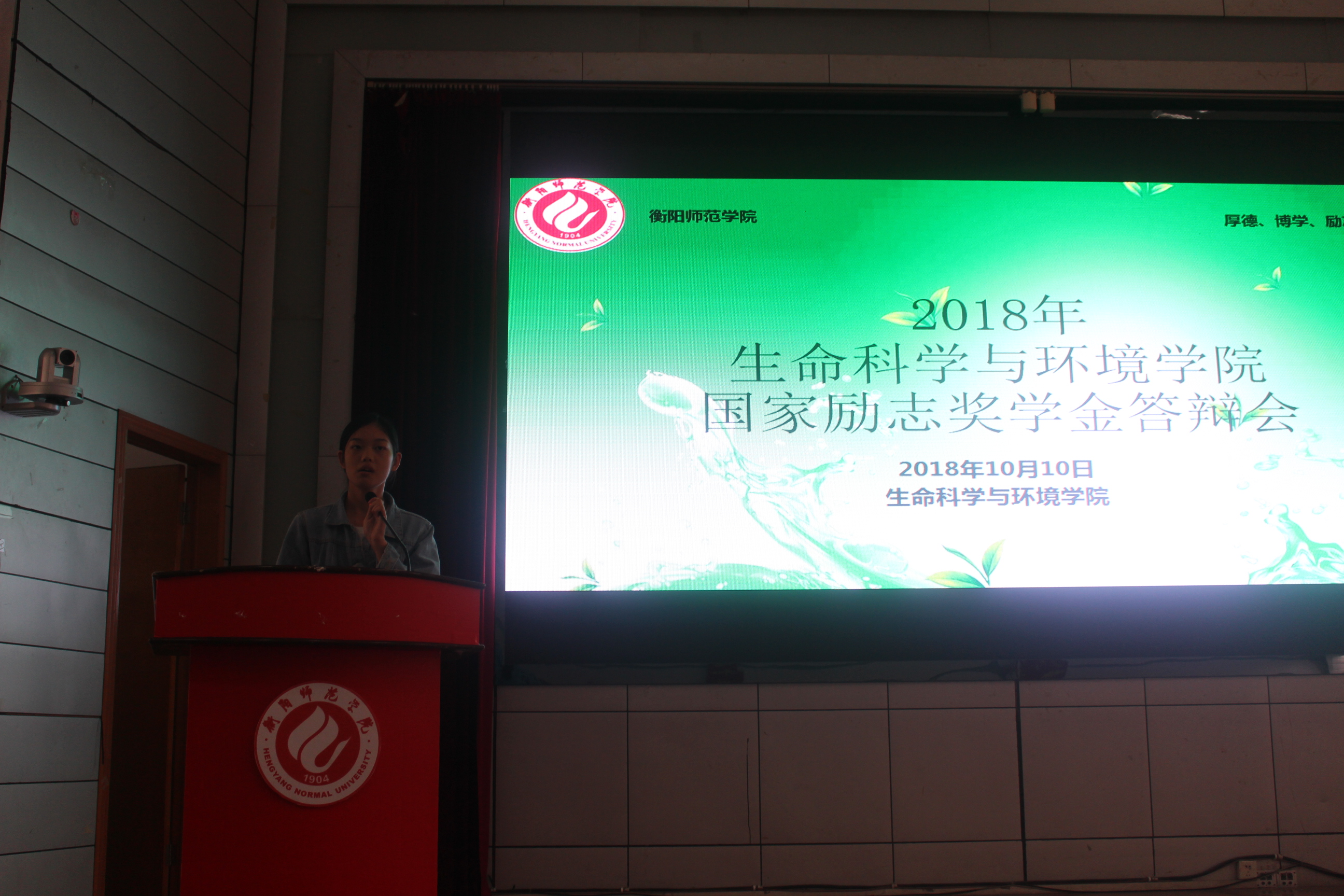 2018年10月10日下午14:00,生命科学与环境学院第六届励志奖学金答辩会在西校区模拟法庭顺利召开。院党总支书记刘艳波,副书记廖海华,团委书记刘树芬,辅导员许若霏、黎琦老师莅临答辩会。2017年度励志奖学金获得者陈文芳以及买球官网各班学生代表观摩学习并参与公投。