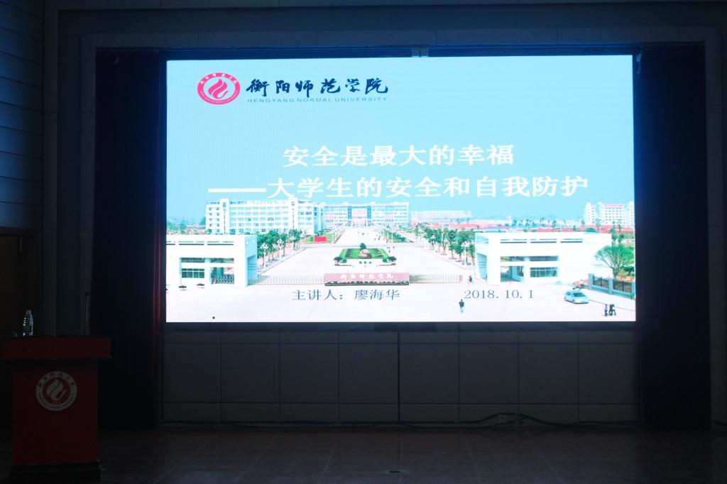 10月1日晚19点,生命科学与环境学院2018级全体新生在西校区模拟法庭聆听《大学生安全与自我保护》主题教育讲座。买球官网党总支副书记廖海华,团委书记刘树芬,辅导员老师许若霏、黎琦莅临讲座。