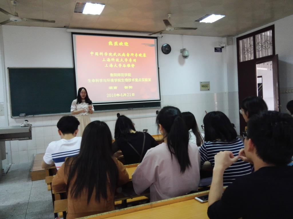 天朗气清,惠风和畅,4月21日,名校研究生与买球官网本科生考研交流会在西外语楼102成功举行,应唐青海博士邀请,中国科学院武汉病毒所李晓蓉、上海科技大学李羽和上海大学谷雅静3位研究生来到生命科学与环境学院与买球官网2015级动物科学专业学生和生物技术重点实验室学员分享考研经验和研究生生活,杨海副院长、唐青海博士以及2015级动物科学专业、2016级、2017级生物科学专业学生参加了此次交流会。