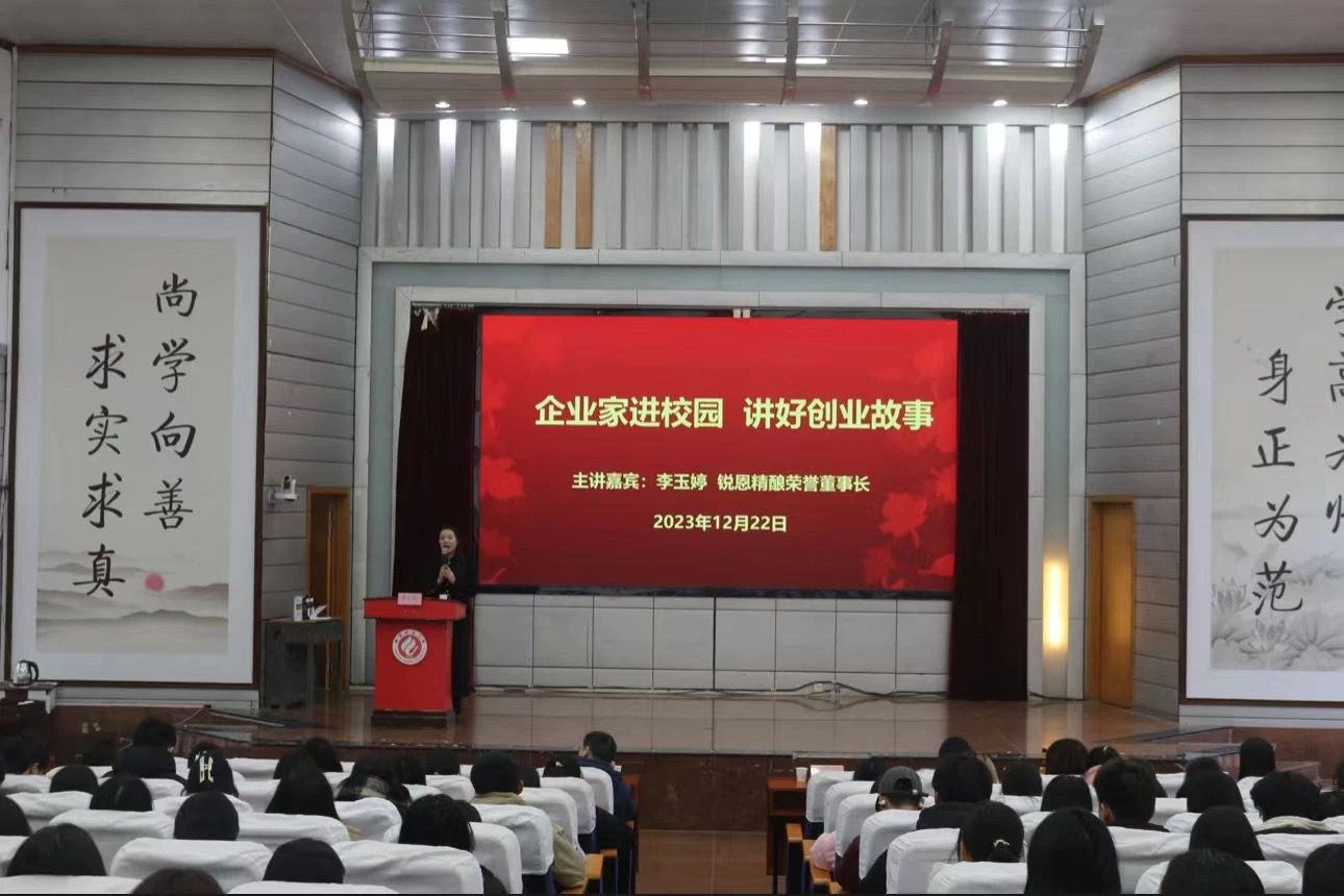 为进一步激发大学生创业热情、提高创新创业能力、促进更高质量就业,12月22日下午三点,买球官网在模拟法庭举办了“生而平凡,因梦想而伟大”为主题的讲座。本次讲座邀请了荣誉董事长李玉婷分享了她的就业创业故事,莅临本次讲座的院领导有党总支书记曹丽敏、党总支副书记陈雅斐、副院长陈晓华等老师,部分学生参加讲座。